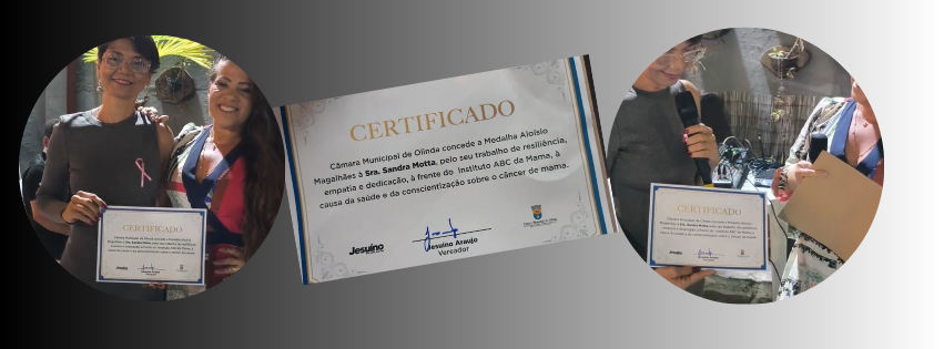 – O Instituto ABC da MAMA celebra uma conquista histórica: a concessão da prestigiada Medalha Aloísio Magalhães à nossa coordenadora, Sandra Motta, pela Câmara Municipal de Olinda. A homenagem reconhece não apenas o empenho pessoal de Sandra, mas o impacto transformador do instituto na promoção da saúde feminina e na luta contra o câncer de mama.
