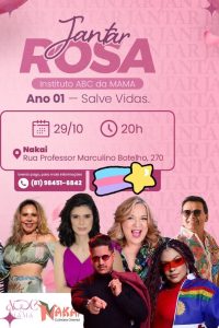 O **Jantar Rosa**, em sua primeira edição (Ano 01 – Salve Vidas), realizado em 29 de outubro no Nakai, reuniu celebridades e apoiadores em uma noite de solidariedade, focada em conscientização e arrecadação para ações preventivas.