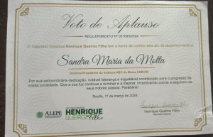 Em 2024, o Deputado Estadual Henrique Queiroz Filho, pela Assembleia Legislativa de Pernambuco (ALEPE), concedeu o Voto de Aplauso à Sandra Maria da Motta, diretora-presidente, destacando sua extraordinária dedicação, liderança e contribuição para o progresso da sociedade.